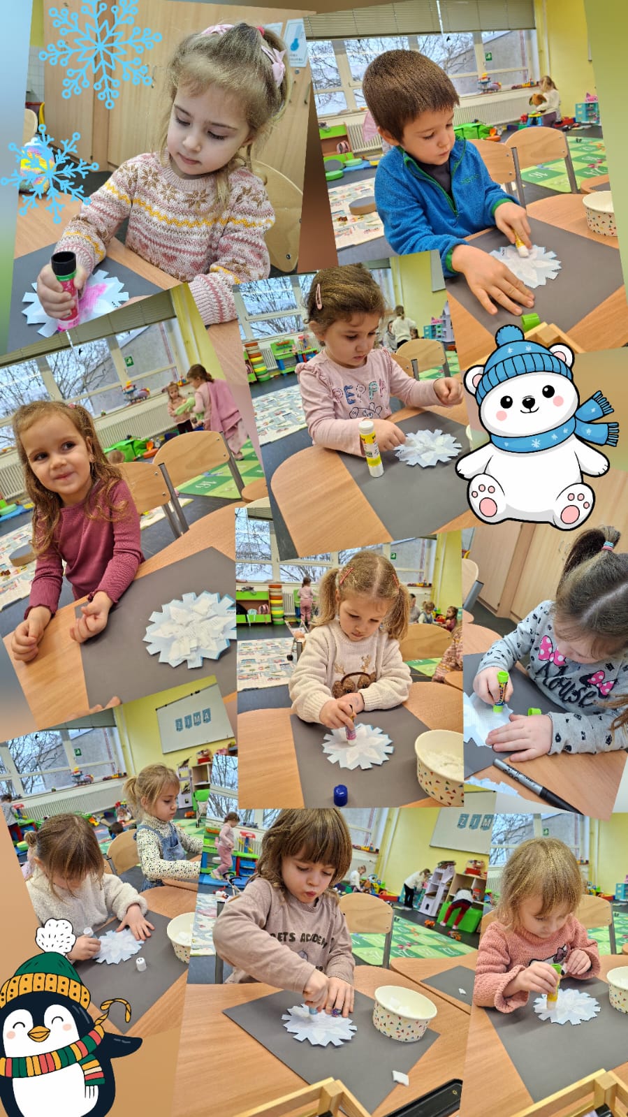 W styczniu w naszym przedszkolu panowała prawdziwie zimowa atmosfera 😊 Dzieci z zaangażowaniem tworzyły zimowe prace plastyczne, brały udział w radosnych zabawach muzycznych oraz rozmawiały o sportach zimowych. Odbyły się także zajęcia z programu edukacyjnego „Czuciaki”, podczas których wspólnie poznawaliśmy emocję zdziwienia — było dużo ciekawości, uśmiechów i inspirujących rozmów.