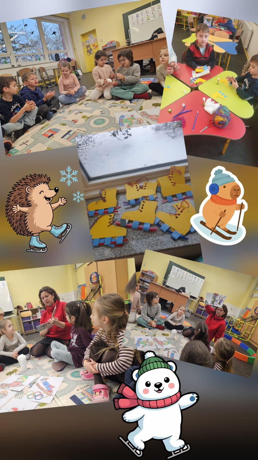 W styczniu w naszym przedszkolu panowała prawdziwie zimowa atmosfera 😊 Dzieci z zaangażowaniem tworzyły zimowe prace plastyczne, brały udział w radosnych zabawach muzycznych oraz rozmawiały o sportach zimowych. Odbyły się także zajęcia z programu edukacyjnego „Czuciaki”, podczas których wspólnie poznawaliśmy emocję zdziwienia — było dużo ciekawości, uśmiechów i inspirujących rozmów.