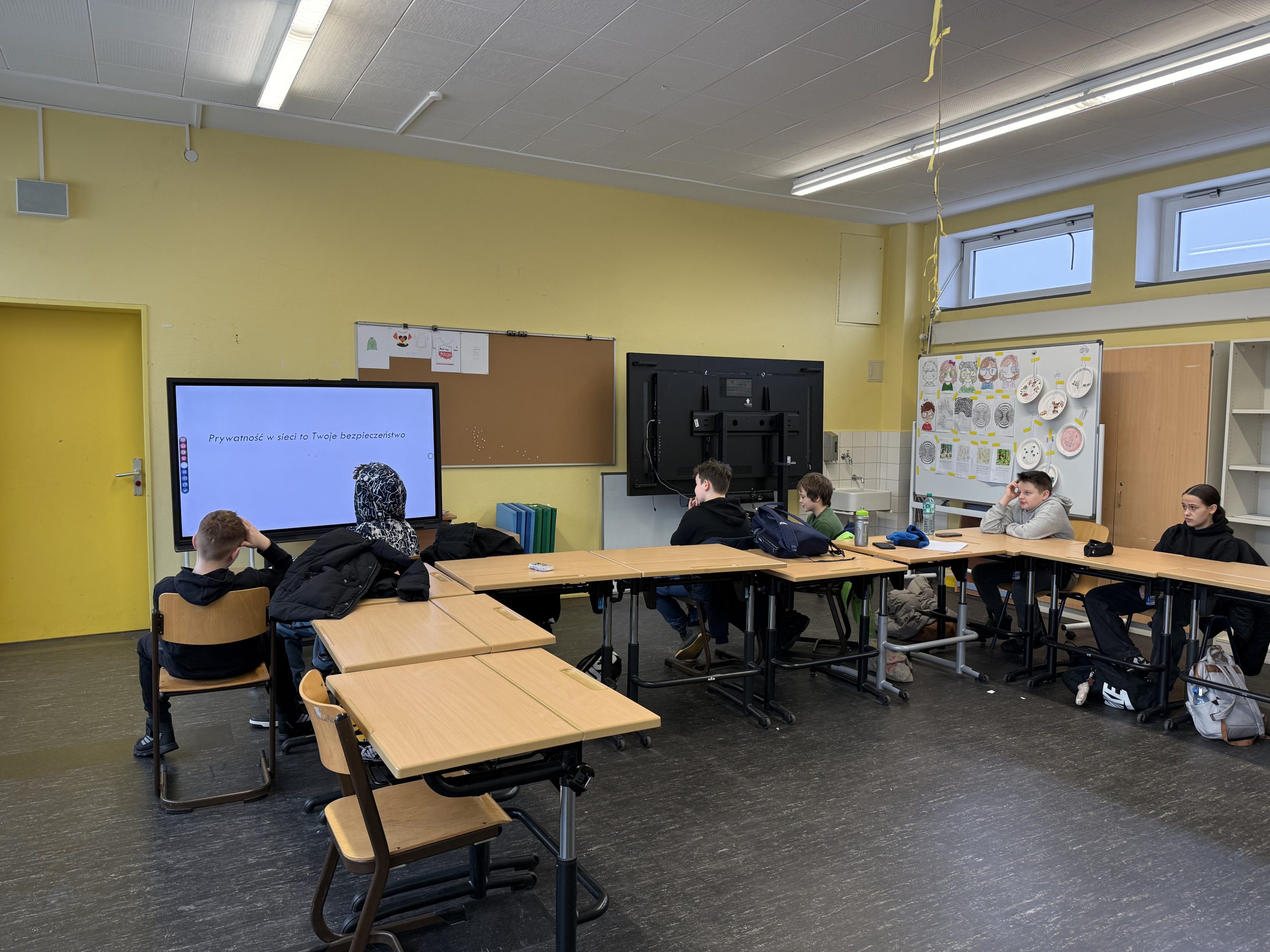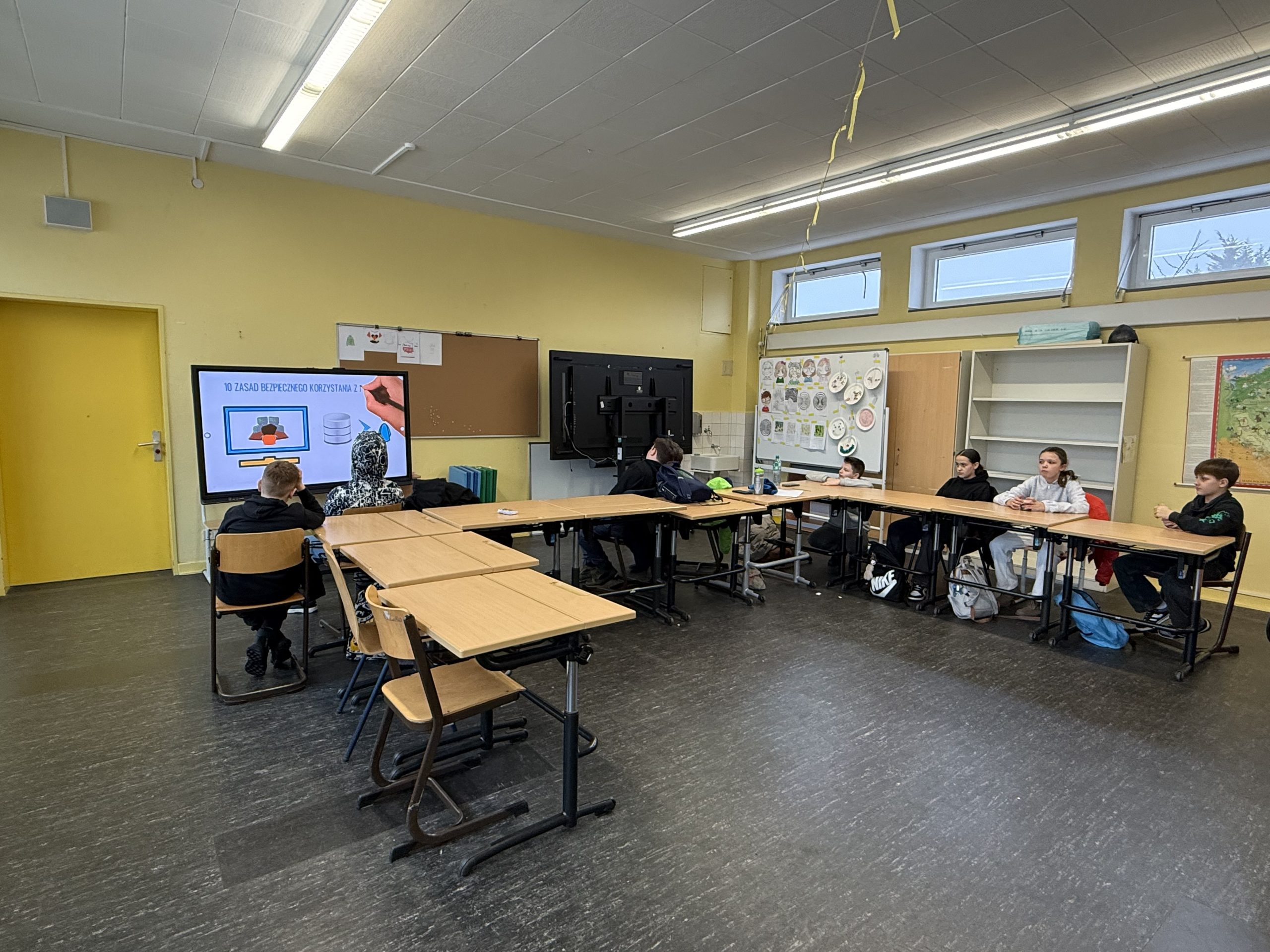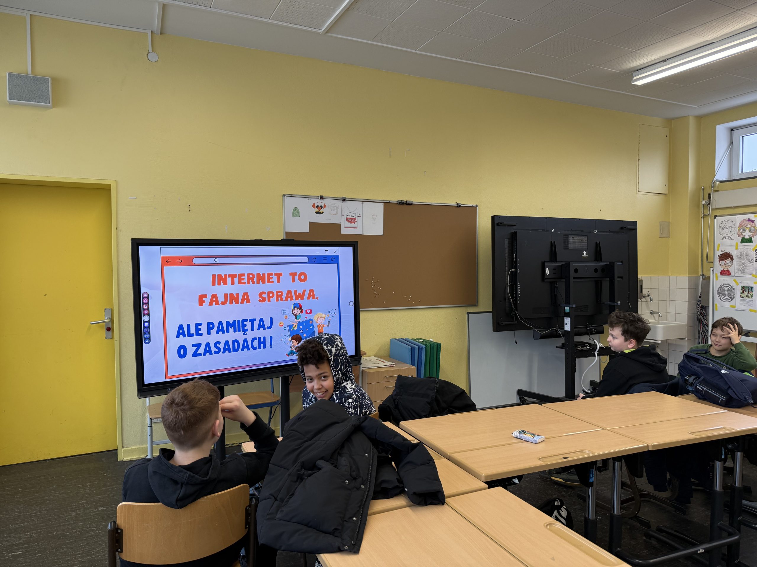 7 lutego klasa 5 i 6 oglądała filmy edukacyjne pt. „10 zasad bezpiecznego Internetu” i „Dzień Bezpiecznego Internetu”. Po wysłuchaniu filmów edukacyjnych uczniowie wykonali i zaprezentowali swoje plakaty oraz hasła promujące bezpieczny Internet. Wychowankowie na zakończenie wykonali kartę pracy, w której należało odnaleźć wyrazy związane z Internetem.